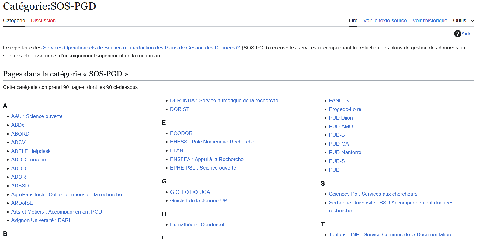 Cette catégorie regroupe les services d’accompagnements à la rédaction de plans de gestion des donnés issue du répertoire des «Services Opérationnels de Soutien à la Rédaction des Plans de Gestions des Données»