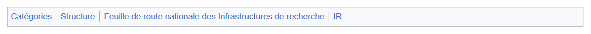 Ainsi, il est possible de catégoriser les pages en ajoutant une ou plusieurs étiquettes Catégorie. Ces étiquettes créent des liens – consultables en bas des pages – qui amènent vers la liste de toutes les pages de cette catégorie, ce qui facilite la recherche des services liés.